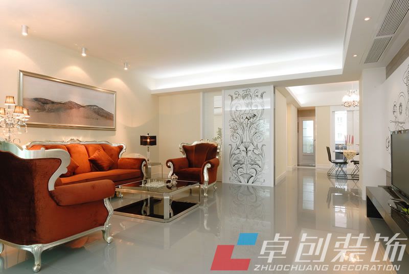 客厅效果图:整体效果相呼应,展示了一种生活,一种品味,一种理念,简单而大气时尚。